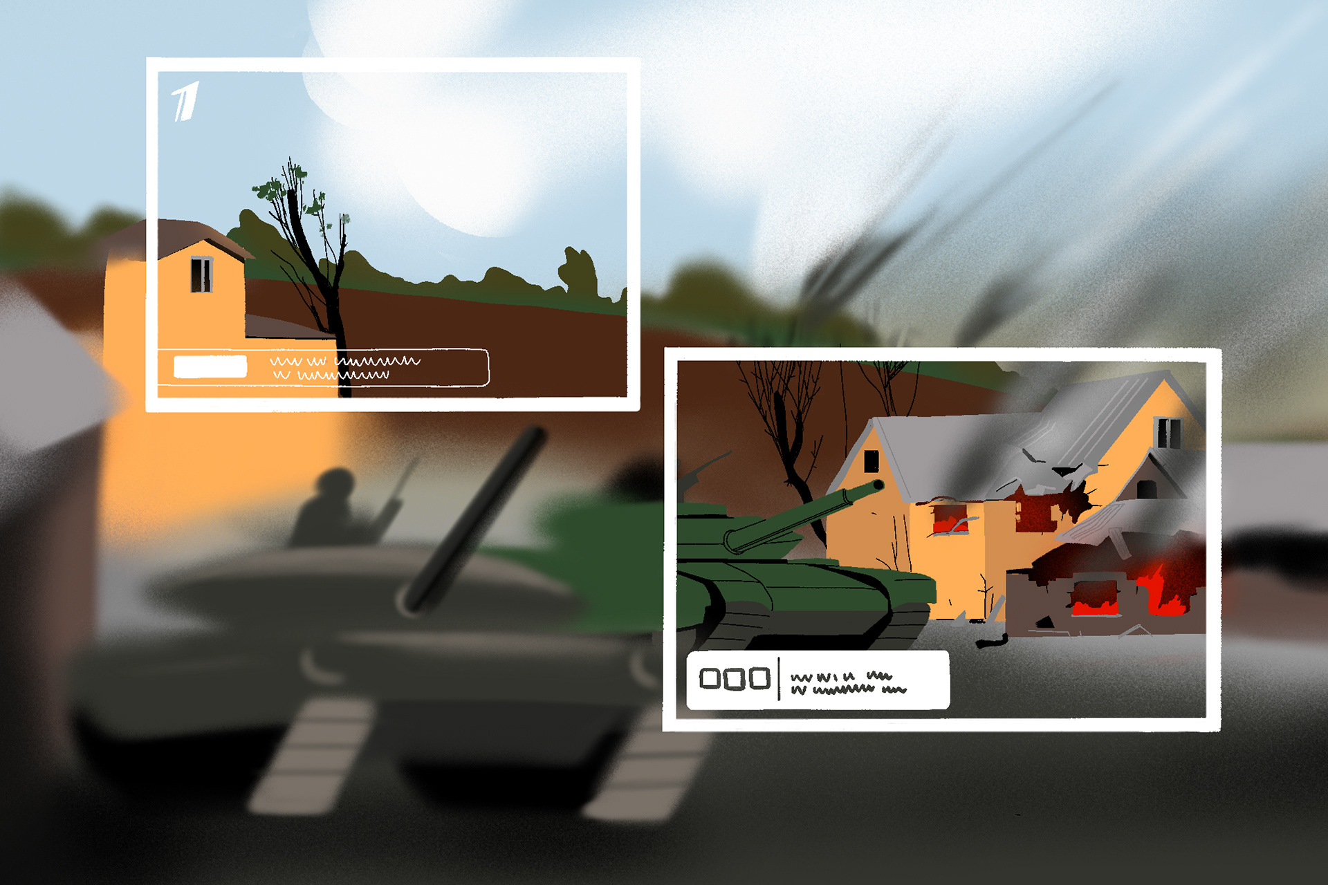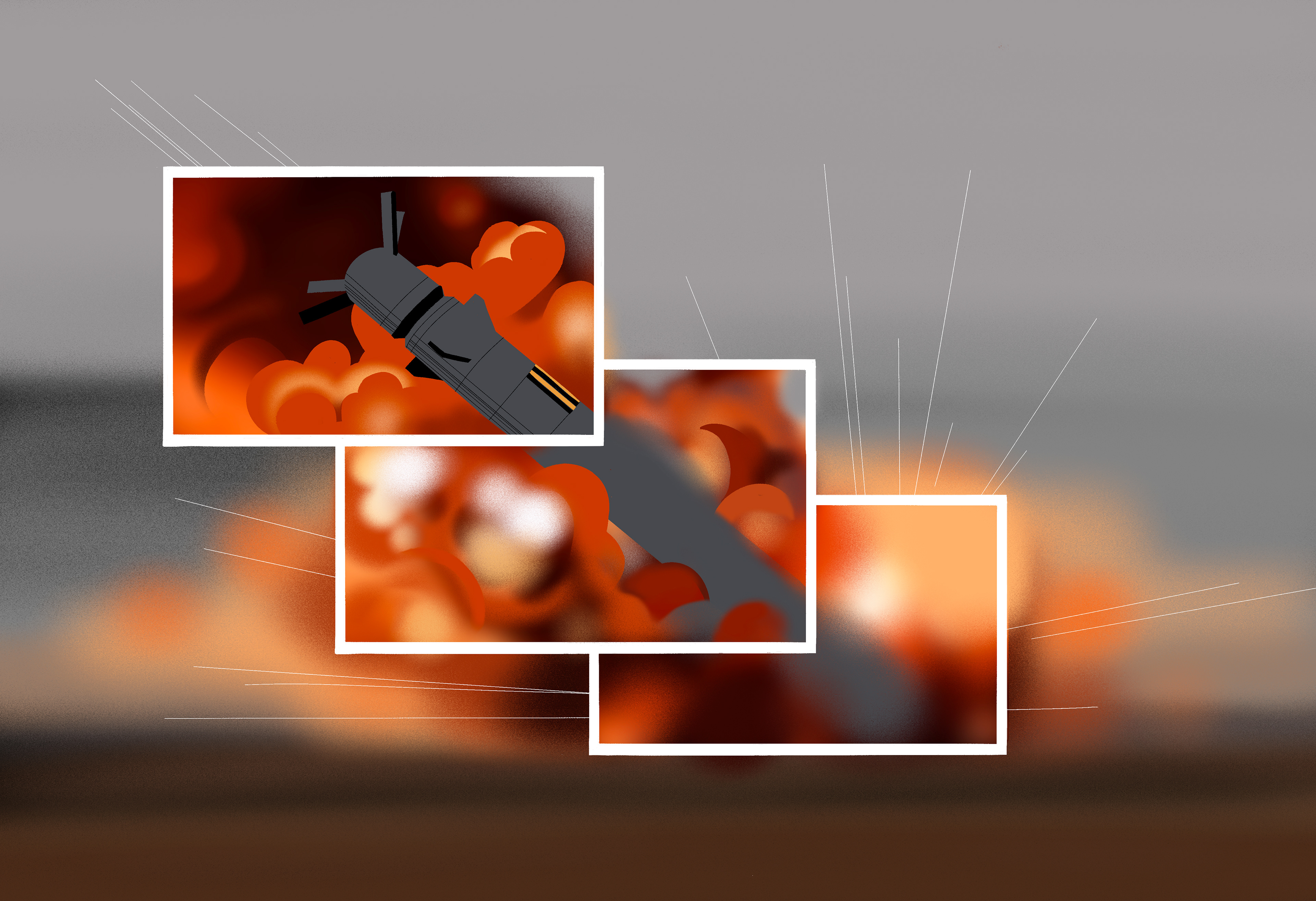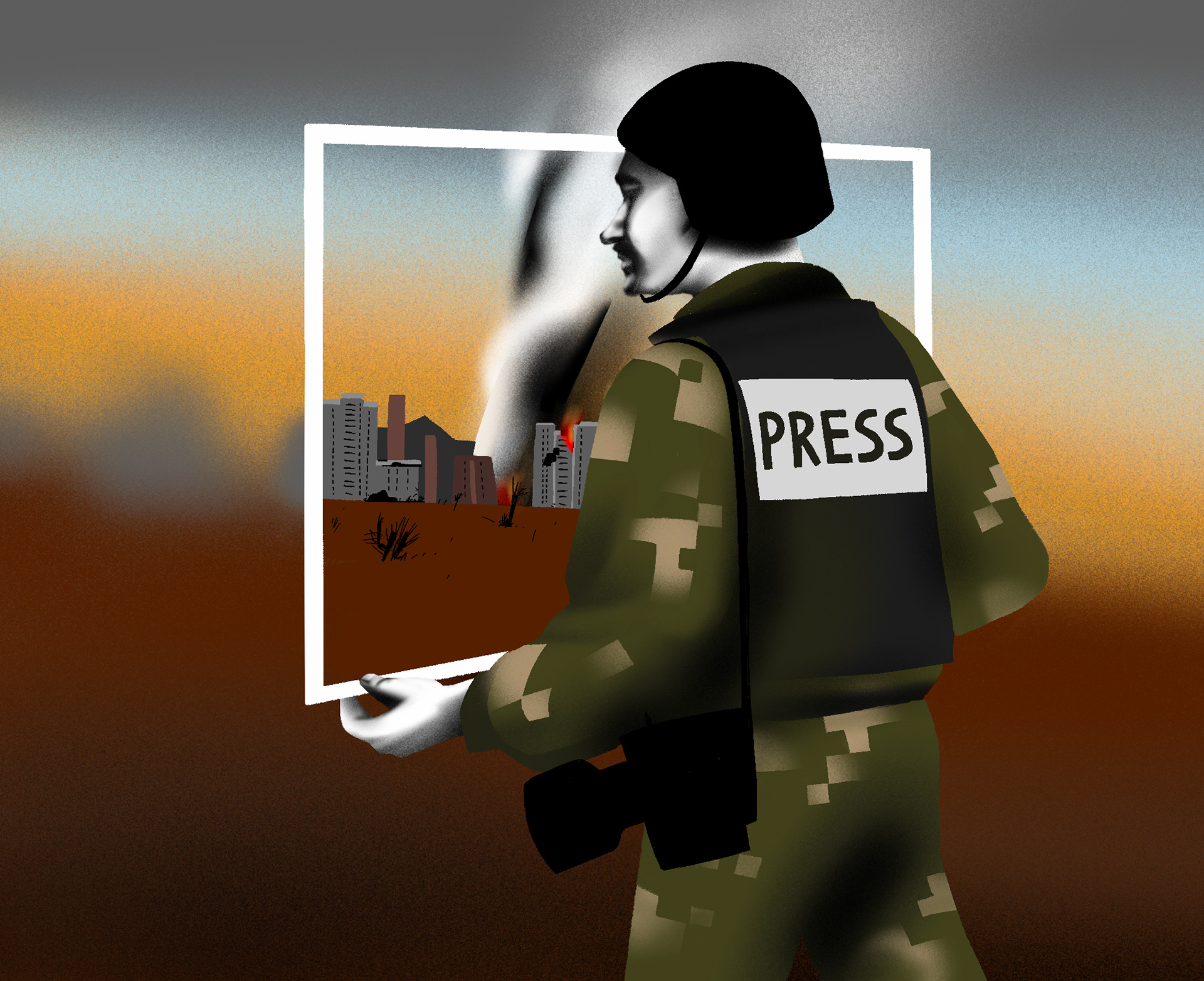 Set of illustration for Kenyon Alumni Magazine about the fog the war. C